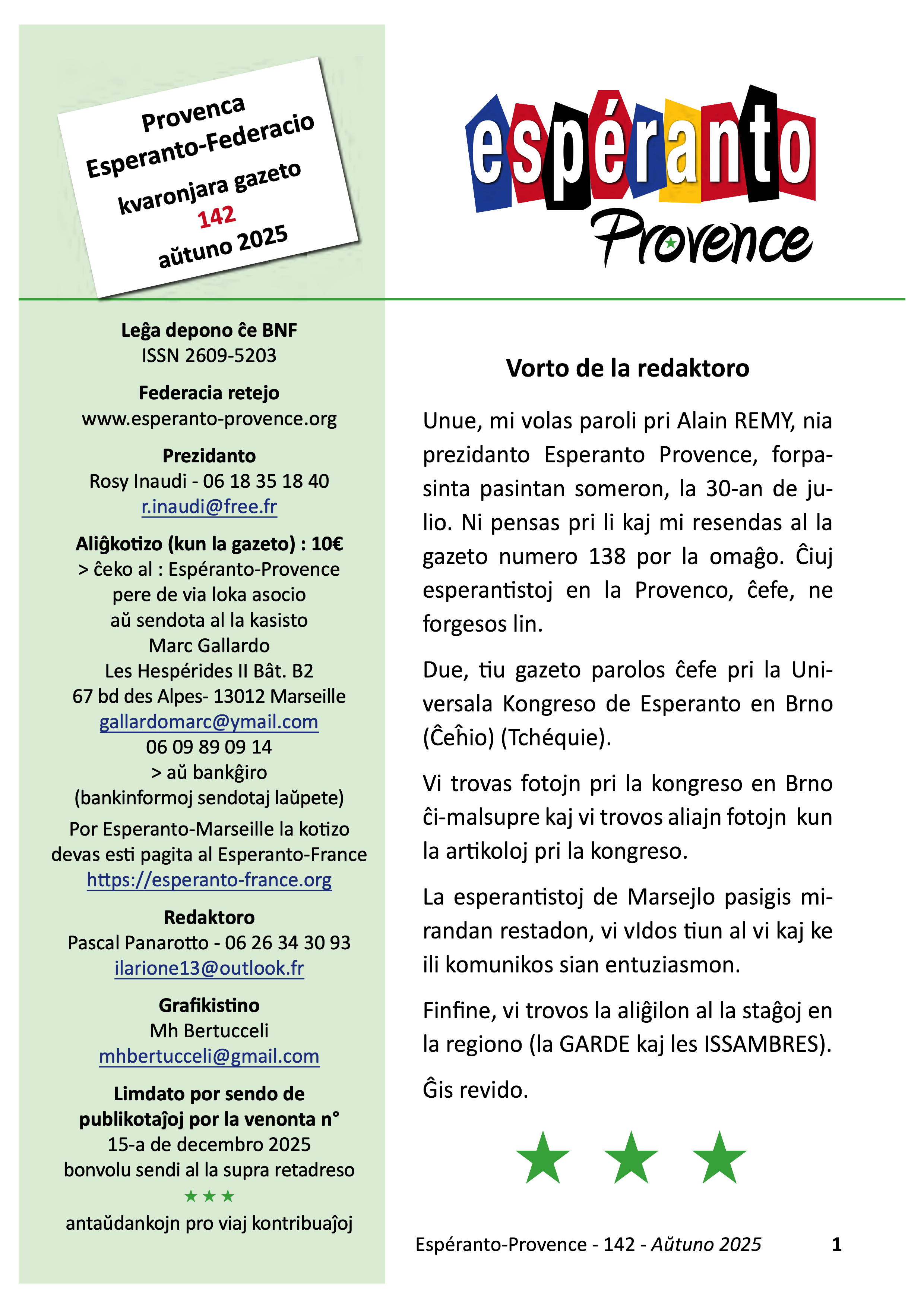 cet article en espéranto : Aktuala numero de nia kvaronjara gazeto : 142 - aŭtuno 2025